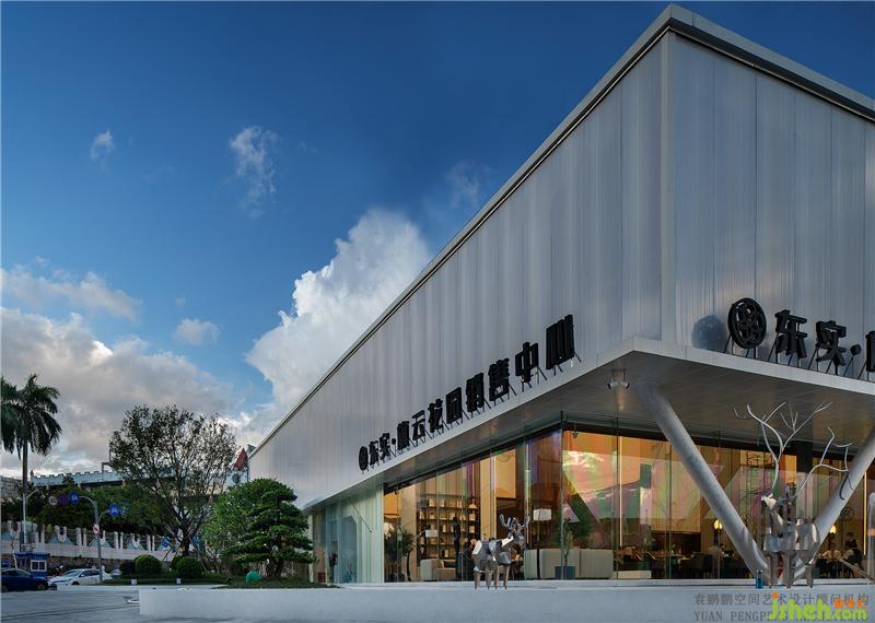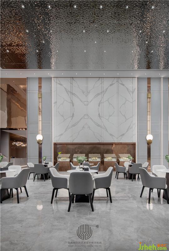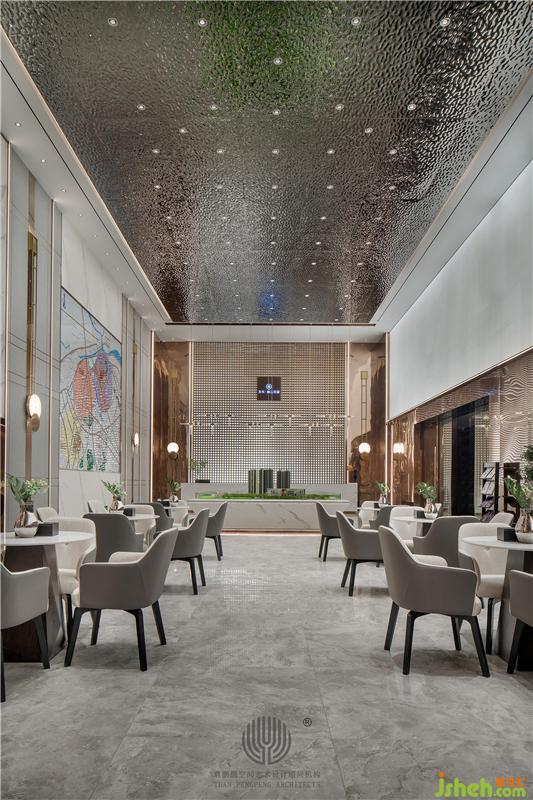 主要材料:建筑外墻為新型半透明材料PC板、金屬水紋板、大理石、香檳金不銹鋼