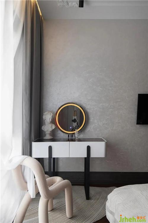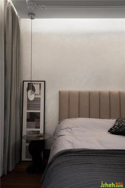 主臥則以低雅不爭的灰與木材鑄就輕奢的優(yōu)雅形制,賦予空間豐盈飽滿的美學(xué)質(zhì)感。綿延出寧靜的詩意。大面積窗戶增加了室內(nèi)光源,窗簾選用了純白雪紗營造靜謐舒適的簡單空間。在置入法式家具及配飾元素與現(xiàn)代家具相互結(jié)合,令空間充滿了時尚氣派的高雅感溫州裝修設(shè)計。