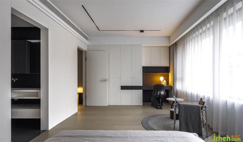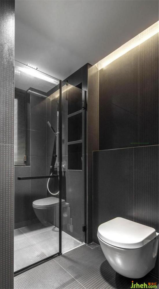 主衛(wèi)使用黑色與白色作為空間的主色調(diào),營(yíng)造干凈純粹的視覺(jué)上躍豪宅設(shè)計(jì)感受。衛(wèi)浴間通過(guò)干濕分離的設(shè)計(jì)美觀又實(shí)用,大面積的黑色,顯得沉穩(wěn)而高級(jí)。