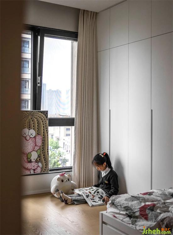 孩子房沿用整體風(fēng)格,溫潤(rùn)的木飾面搭配柔軟的小床,書(shū)架與裝修設(shè)計(jì)書(shū)桌兼具滿足日常的使用。同時(shí)使用通頂儲(chǔ)物柜,收納孩子的雜物,創(chuàng)造出專屬于孩子們富余的一方天地。