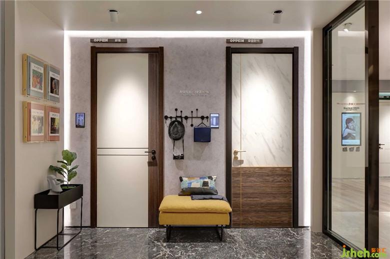 整個門店結合了歐派全屋定制的背書,形成不同家居空間。通過玄關/客廳/餐廳/茶室/衛(wèi)生間/臥室空間功能,帶入木門的花色及功能。