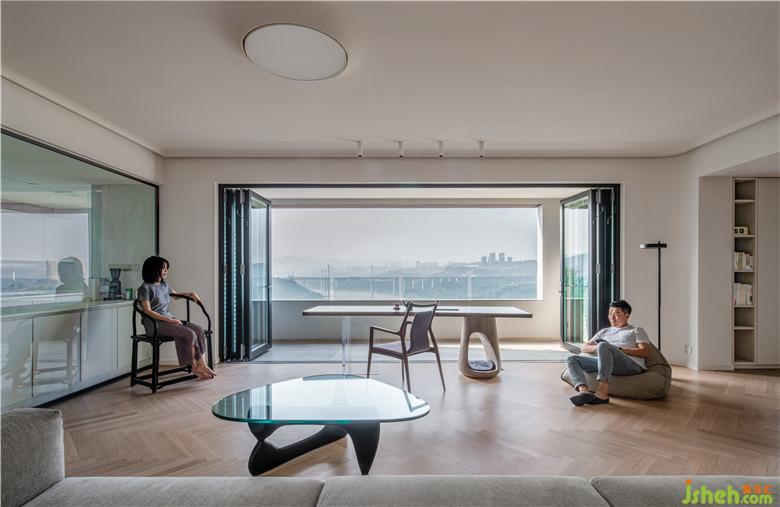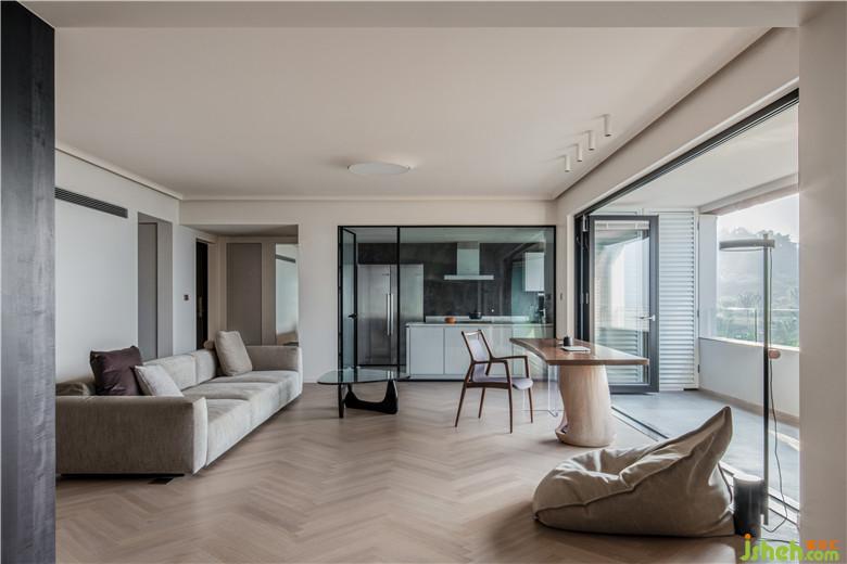 厚樸沙發(fā)靠墻而居,茶餐桌穩(wěn)立軸心