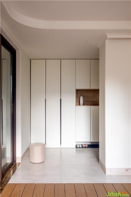 大面積儲藏與展示相結(jié)合的柜子,收納著兒時(shí)的玩偶與讀物,疊放著的相冊是家人共同成長的軌跡,四口之家的親昵情感都在這一收一放之間流轉(zhuǎn)。