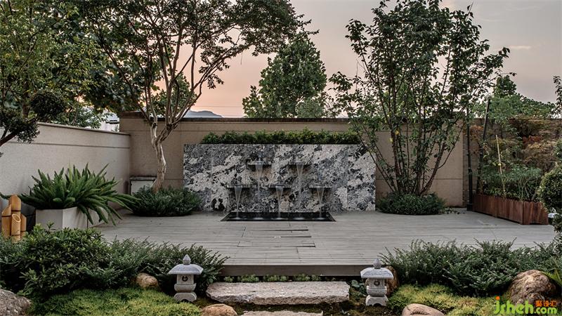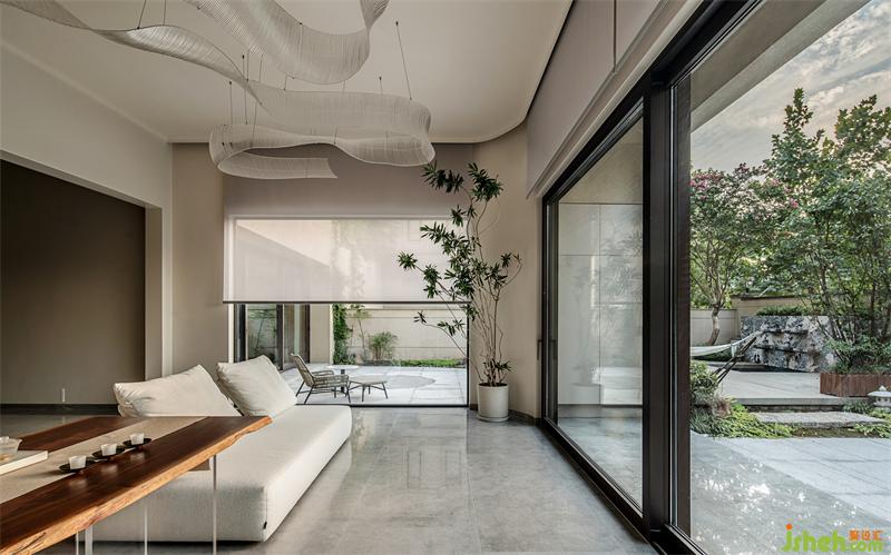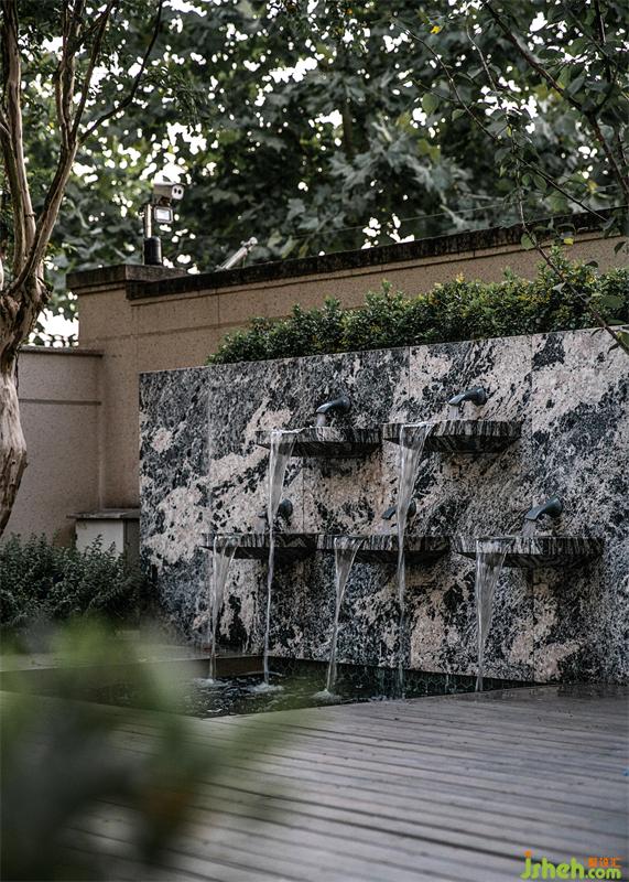 自入戶門廳步入住宅,花墻端景令人眼前一亮;重慶別墅裝飾對稱構(gòu)圖彰顯平穩(wěn)之感,與池中的潺潺流水、跳動魚群對比。