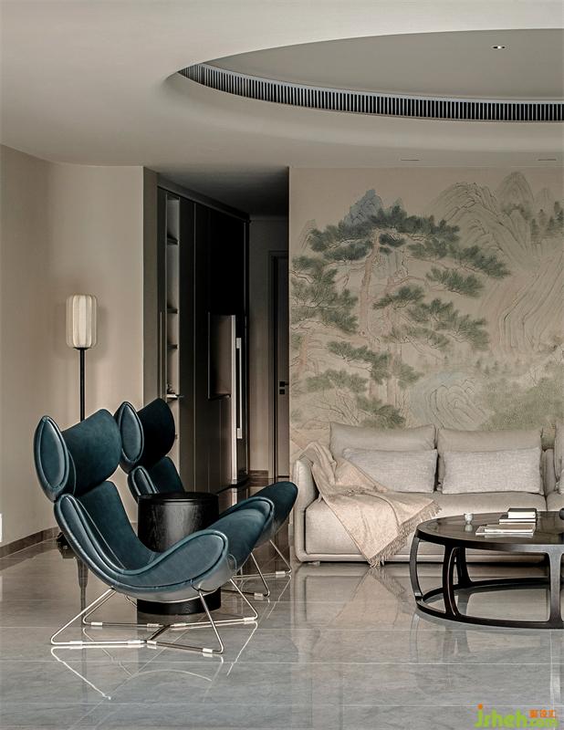 重慶別墅裝飾直線繪出兩點(diǎn)間的最短距離,弧線卻是自然界饋贈的神秘禮物??蛷d、茶室中的陽角和柱子,皆采用了弧形設(shè)計(jì),是帶給空間靈動的調(diào)劑,亦是敬獻(xiàn)給大自然的回禮。