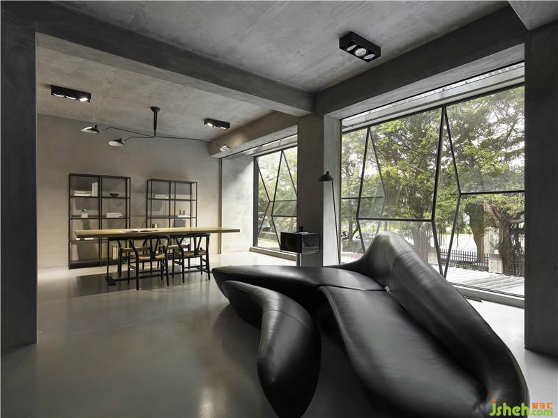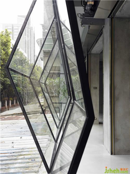 座落于幽靜巷弄里的方正空間,面對(duì)著一大片的連續(xù)樹(shù)景,用鉆石切面的語(yǔ)匯構(gòu)境,試圖透過(guò)不同的角度捕捉綠意,窗戶上下左右的錯(cuò)置分割,可以看到不同畫(huà)面的場(chǎng)景,自然的景色中,多了層次變化及光影轉(zhuǎn)折,多重視野的重置組合,隱喻著創(chuàng)意工作者的不同眼界,創(chuàng)新求變的思維及追求完美的精神。