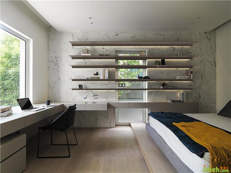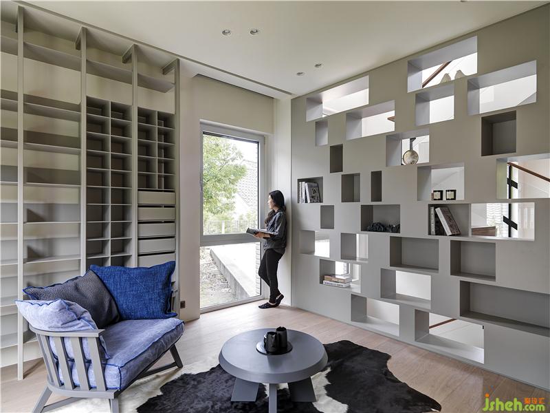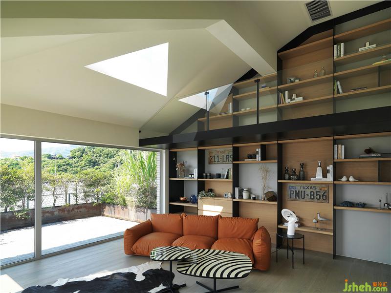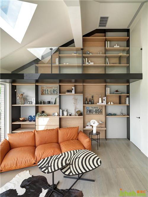 挑高的閣樓休憩區(qū)擁有浪漫三角天窗,北京裝修設(shè)計(jì)彷彿置身于白色的戶(hù)外帳篷內(nèi),書(shū)墻由鐵件、木作、玻璃圍欄構(gòu)筑,儼然成說(shuō)故事或冥想、放空的好地方,讓大自然芬多精與書(shū)香氣息一同共襄盛舉。