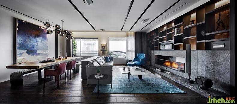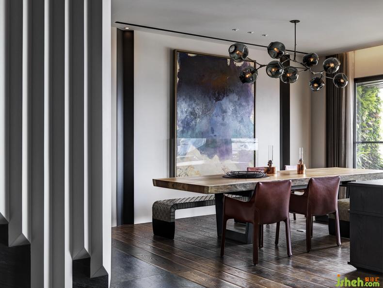 餐廳區(qū)桌上懸掛著來自紐約新銳設(shè)計(jì)師創(chuàng)作的大型手工玻璃吊燈,餐桌背景則是一幅名家畫作坐鎮(zhèn),氣勢輝宏不言而喻,豐富的收藏全室隨處可見,中外名作讓藝術(shù)生活垂手可得。