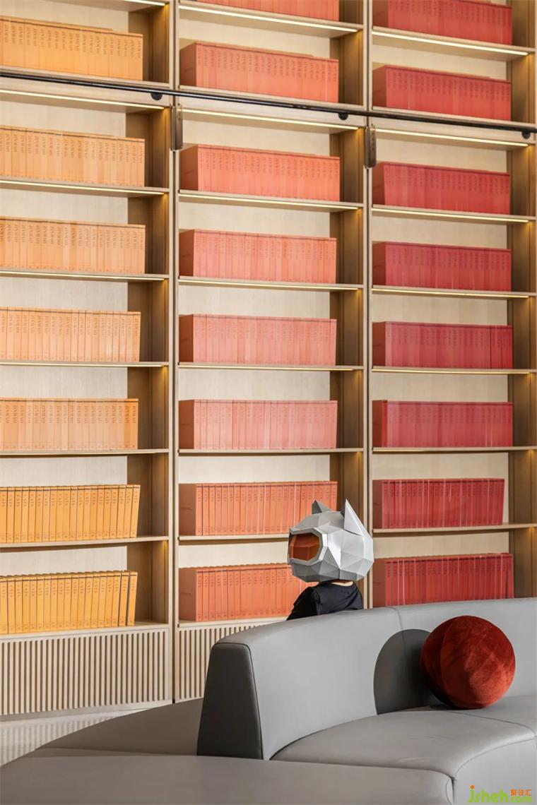 身處夾層書屋,不僅可以休憩更可以學(xué)習(xí)閱讀。裝修設(shè)計整齊排放的書籍,可以讓人們了解關(guān)于貓的一切博物知識。在書籍的設(shè)計上,不僅追求藝術(shù)的美感,在內(nèi)容上也富有創(chuàng)意、充滿新知。