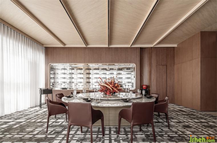 咖啡與茶是人們?nèi)粘I钪蓄H為重要的部分。“吃茶去”“飲茶先”的網(wǎng)絡(luò)用語里蘊(yùn)藏著古人對(duì)茶的鐘情之意。茶水雅淡,因此在器物的選擇上不宜過份鮮妍,光是為了傳遞茶之美,飲茶之閑適淡然,售樓處設(shè)計(jì)就必須在設(shè)計(jì)中獨(dú)具幾份心思與創(chuàng)新。為了彰顯“空”的精神,特意選擇具有鏤空特質(zhì)的屏風(fēng)與茶桌,傳遞出茶室的空間意蘊(yùn)。