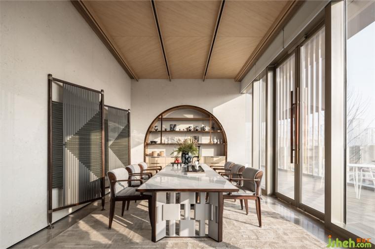 茶室可語千言。在現(xiàn)代人生活中,一同喝茶,可抵達(dá)至人心最深的尺度,精神的王國。售樓處設(shè)計(jì)雅致的喝茶用具,古樸自然的畫作與花器,木質(zhì)材料的選用,是最適合人心的選擇。