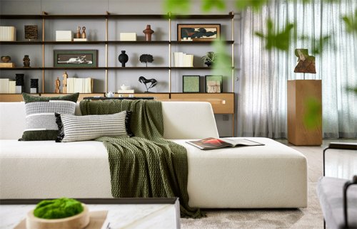 客廳不止是體面會(huì)客的對(duì)外社交場(chǎng),也是家庭獨(dú)屬于家人間的對(duì)內(nèi)溫馨場(chǎng)。沒(méi)有復(fù)雜的線條,簡(jiǎn)單的色彩和塊面,滿(mǎn)眼可見(jiàn)的綠植,所謂藝術(shù)感十足的度假生活當(dāng)如此這般。通透的自然光線讓空間有了獨(dú)一份的明亮,居于其內(nèi),樣板房設(shè)計(jì)感受到如同深處自然一般的暢意。