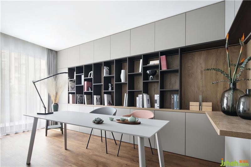 毗鄰主臥的書房,增設(shè)露臺,使空間內(nèi)外貫通,形成了一條順暢而獨特的觀景動線,憑窗攬景,極目賞天舒。