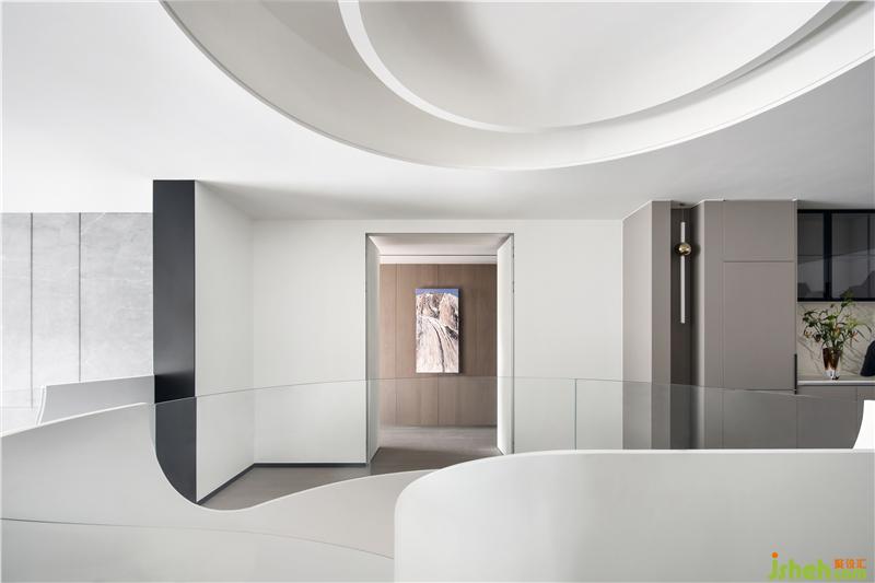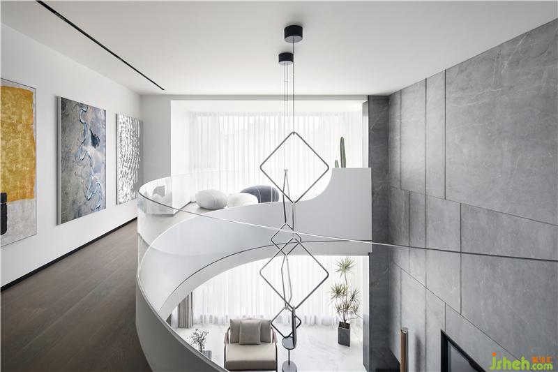 從二樓原有的挑空空間拓展開去,成為了現(xiàn)在業(yè)主私人的“藝術(shù)長廊”,這里陳列著業(yè)主的藝術(shù)收藏品。漫步其中,便可以細細品味每一處收藏,享受藝術(shù)帶來的精神愉悅與滿足。