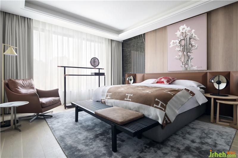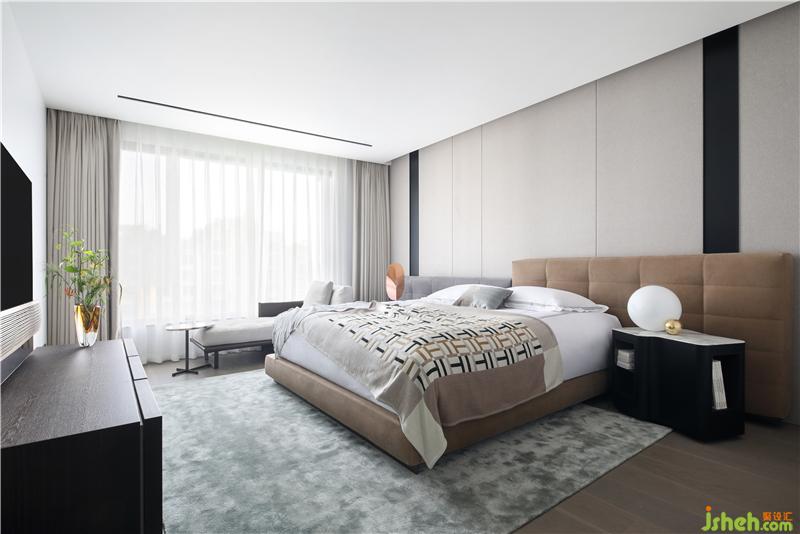 臥室作為休憩的場所,又因不同的居住者屬性而擁有不同的布置與個性。雙主臥的設(shè)置,頗具質(zhì)感,收納合理,格調(diào)開闊,為人提供了獨處與放空的私密空間。床頭陳萬毅的畫作《太湖石》則為空間增添了些許藝術(shù)氣息。