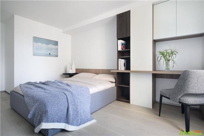 與雙主臥相比,客房則偏于簡潔明朗、清新雅致。瓶盞綠植的點染,為平靜的空間帶來幾分活力。