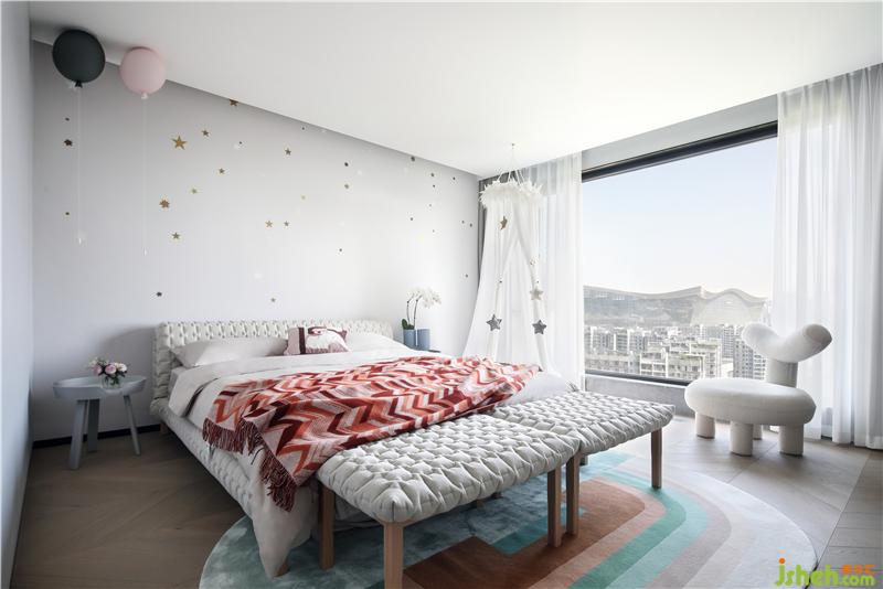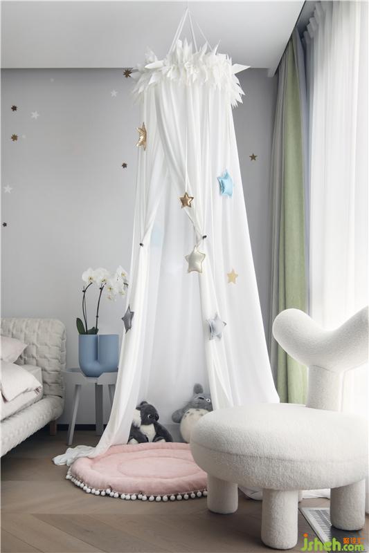 為了滿足業(yè)主的訴求,設(shè)計師為業(yè)主的兩個女兒都設(shè)計了完整的套房。兒童房套房的打造,可以讓女兒們的生活與學(xué)習(xí)更加便利。 低飽和度的斑斕色彩盛載著女孩們糖果般的夢,憨萌的毛絨玩具、童趣寫意的家具,美好溫軟,審美品位從小抓起。公主般的帳幔小心翼翼地呵護著孩童的天真幻想,帶給她們無憂無慮的童年如花笑靨。