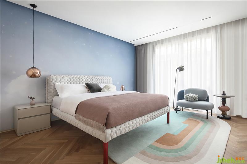二樓的兩間女兒房均為套房。并根據(jù)兩個女孩不同的年齡個性與身心發(fā)展階段做出了不同的設(shè)計方案。大女兒房用沉靜理性的藍(lán)色來做主要的裝飾色面,并照顧到其學(xué)習(xí)與成長,辟有隱秘的學(xué)習(xí)區(qū)域。