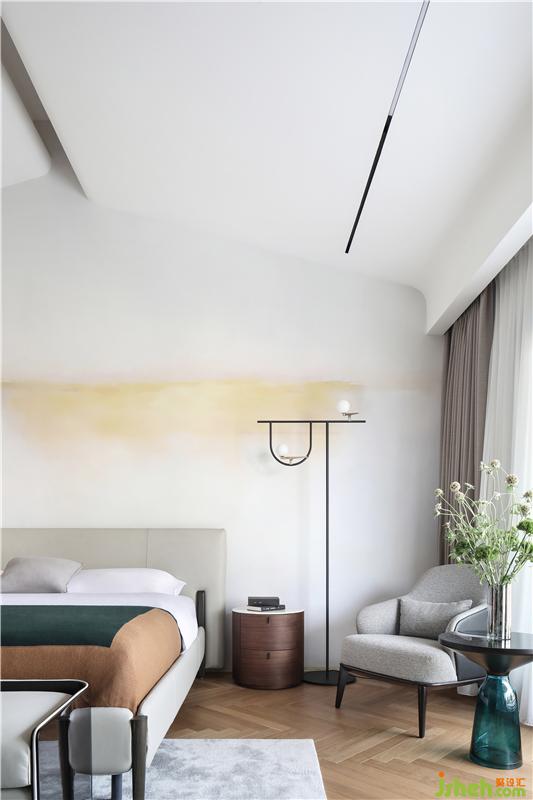 設計師將三樓逼仄不合理的原始平面加以改造與優(yōu)化,打造了全新的主臥套間,并對每一間房屋的面積進行了恰當?shù)姆峙?,得到了更為合理的休憩之所?nbsp;吊頂一改常規(guī)的刻板定式,將矩形屋頂切割,做出下垂打開的弧度,高低錯落之間顯示出一種舒緩的節(jié)奏,向下的弧線構(gòu)成的形態(tài)帶給人一種接納與包容感,同時形成一種空間的趣味性,亦彰顯出居住者特立獨行的個性氣質(zhì)。