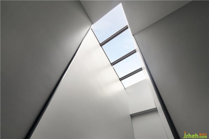 將原有的封閉式樓頂,開出一口天井,線條干練有力,讓外部光線自然傾瀉下來,照亮室內(nèi),使整個空間都獲得了自在的呼吸之柱。