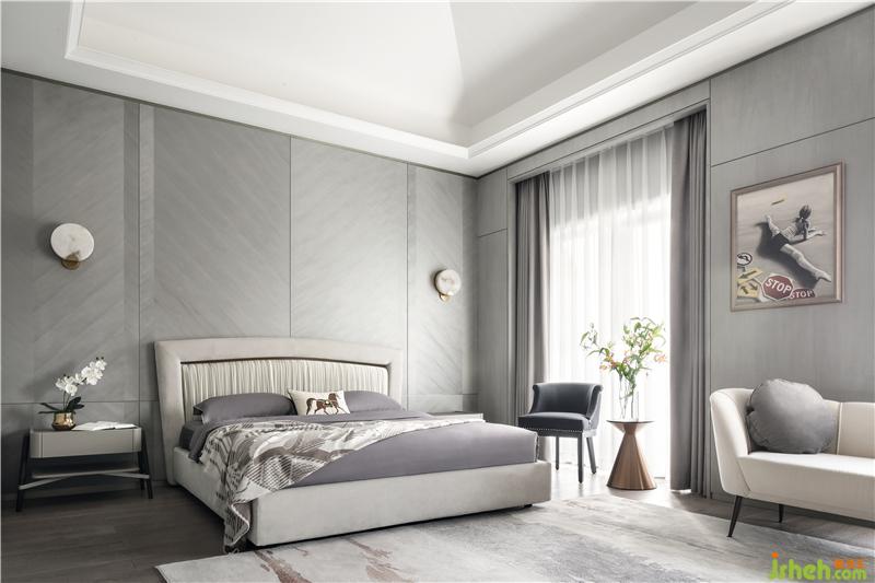 大面積的灰色運用,營造出臥室的靜斂氛圍,并為安靜的休憩提供了保障。清新綠植的點綴,讓整個空間都變得活力流動起來。