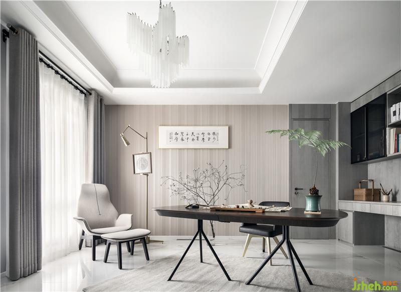 業(yè)主最喜愛的空間非書房莫屬,頗有“躲進書房成一統(tǒng),管他冬夏與春秋”的架勢。整個書房融入傳統(tǒng)的審美意境,墨香盈室。喜愛讀書、練字、畫畫的業(yè)主在這里仿佛找到了一片精神的憩息之所,在這里可以潛心靜書,將陶冶性情的詩意生活凝結(jié)在舒展萬變的線條之美中。