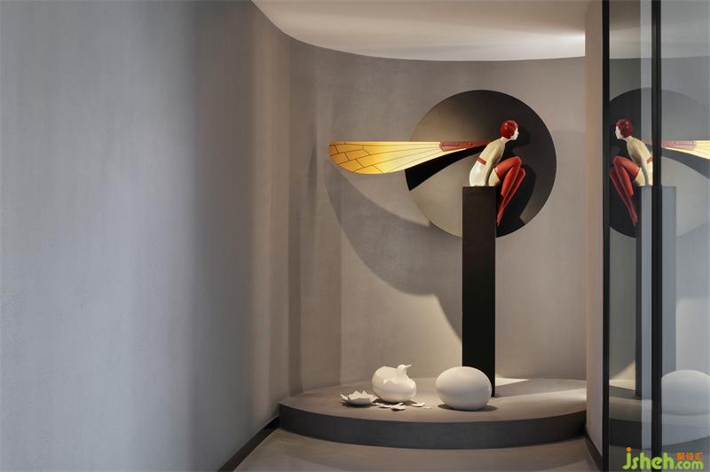 故事敘述,講求起承轉(zhuǎn)合,首先來(lái)到起點(diǎn)。新辦公區(qū)設(shè)計(jì)入口處雕塑靈感來(lái)源于法國(guó)藝術(shù)家約翰·莫里斯的創(chuàng)作理念,獨(dú)坐高柱、身披翅膀的沉思者形象,給人一種“獨(dú)上高樓,望斷天涯路”的冥思與求索印象,寓意著公司在成長(zhǎng)中始終不懈探索的精神烙印與文化傳統(tǒng)。