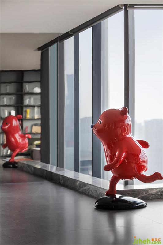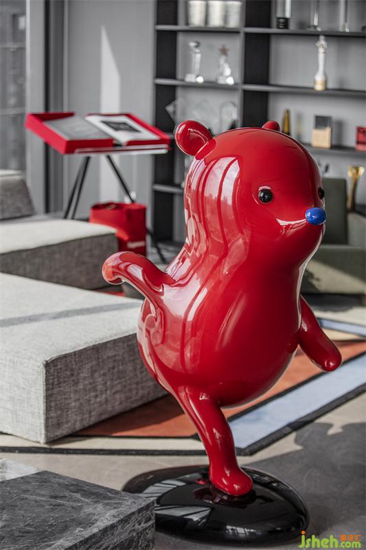 雕塑《奔跑》來(lái)自藝術(shù)家張占占最經(jīng)典的“小熊”系列,它有著俏皮可愛(ài)的形象,圓滾滾的身體,惹人憐愛(ài)的表情以及纖細(xì)的四肢,正擺出向前奔跑的造型,讓人忍俊不禁。藝術(shù)家張占占用這樣引起人感情共鳴的形象讓人在藝術(shù)作品中感受童真的好奇心與活力。同時(shí),藝術(shù)家選擇紅色作為小熊的顏色,是希望更多的人注意到“小熊”,在空間中吸引人的視線,讓藝術(shù)在空間中的作用最大化。