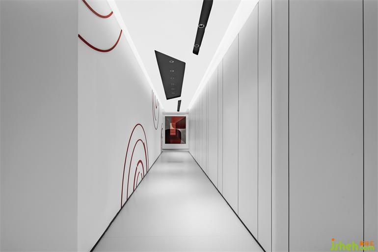 公共通道大面積的使用白色,潔凈時(shí)尚,充滿未來(lái)感。局部的圓形造型呼應(yīng)著公共空間的造型要素。