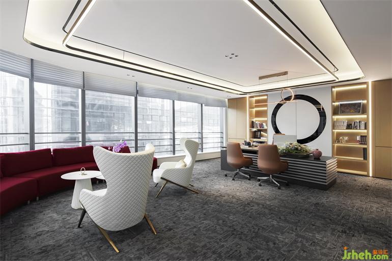 總裁辦設(shè)計(jì)以未來(lái)形象為要點(diǎn),現(xiàn)代精致的工藝設(shè)計(jì),也烘托了空間的形象。