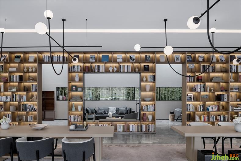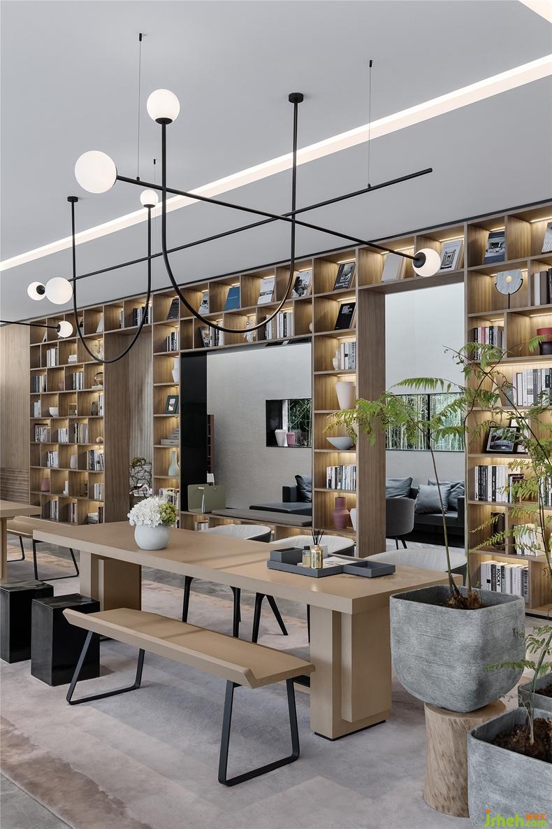 大面積的書墻將洽談區(qū)與深夜書房分隔開,也使空間更有通透感。極具設(shè)計感的色調(diào)搭配為舒適悠閑的空間氣質(zhì)帶來升華,靜謐又精致。時尚又經(jīng)典的氣息在淡雅的色調(diào)中彰顯出自然的本性。沒有多余的復(fù)雜設(shè)施,設(shè)計師將這里設(shè)置的如同發(fā)光、純凈一般的存在。整個空間立于紛繁,而靜于內(nèi)心。