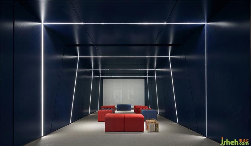 多功能影音廳身兼員工培訓(xùn)、公司文化展示、休閑影音播放等多種文化社交功能,以“盒子”的概念集成出一個(gè)幽暗與明亮對(duì)比的焦點(diǎn)場(chǎng)所。包裹墻面和天花的沖孔鋁板有效吸音,實(shí)現(xiàn)完美的聲學(xué)效果,為表情豐富多變的工作方式形成可能。