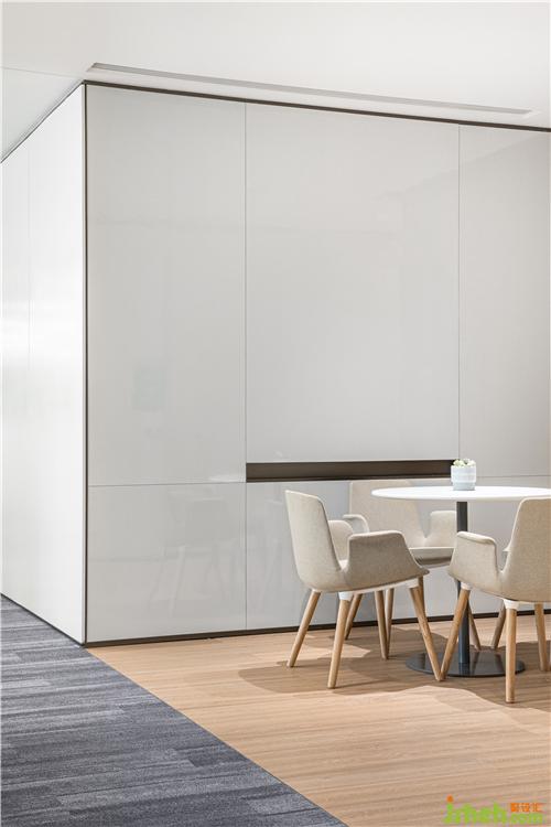 區(qū)別于繭型工作站,主辦公空間之外劃分出的各類(lèi)談話(huà)區(qū)則不拘泥于完整空間框架約束,更具有“群組性”及“非正式”感。