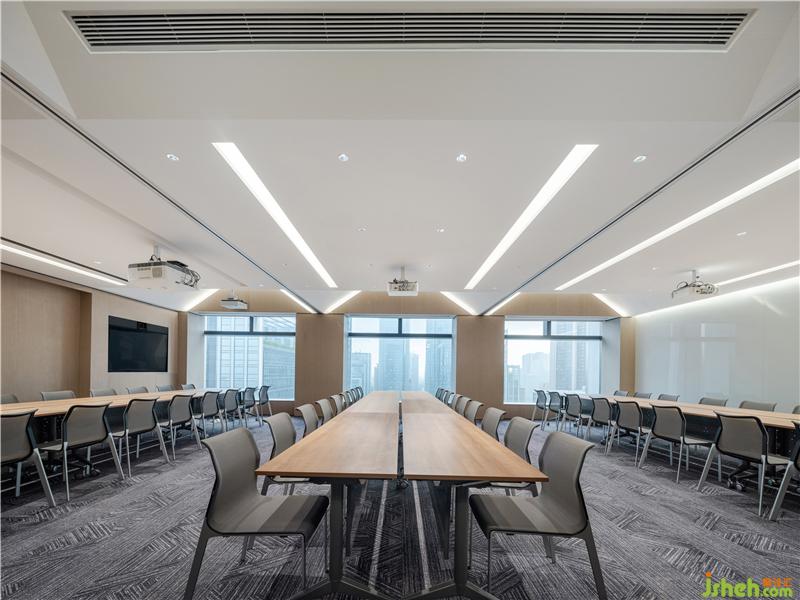 空間內(nèi)零星分散了小型會(huì)議、組合會(huì)議、視頻會(huì)議等不同等級(jí)的會(huì)議室及會(huì)議系統(tǒng)。會(huì)議室內(nèi)的燈具都做了防眩光處理,風(fēng)口做了散流口的處理,提升舒適感的同時(shí)減少了會(huì)議打擾。