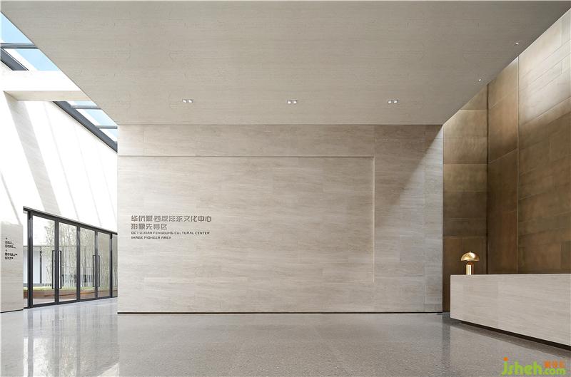 項目總建筑面積2875㎡,一層為多功能廳,二層為以O(shè)CAT西安館為主體的展覽空間。文創(chuàng)室內(nèi)設(shè)計師借由與景觀的光影互動而切入,通過三個自然庭院的串聯(lián)、組合,巧借建筑頂部線形天井的光,展廳內(nèi)部與外部庭院相互借景,藝術(shù)成為自然的畫框,自然成為藝術(shù)的點綴。