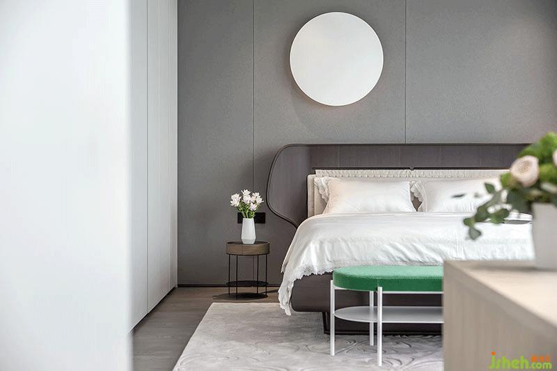 不論是包裹式布藝墻面,還是精心考慮的有主次的功能性照明,臥室都是在“舒適”為首要的前提下而展開。