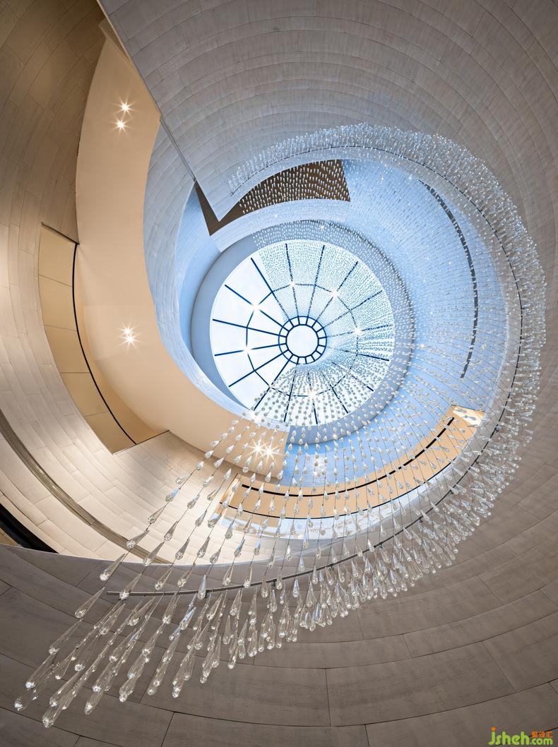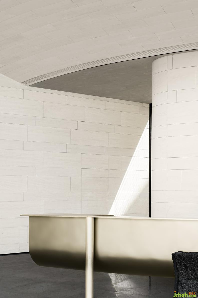 「時間」和「空間」是互相垂直的兩個維度。貝殼型的天花造型旋轉(zhuǎn)流動,售樓處設(shè)計構(gòu)成前臺背景,接待區(qū)的平行時空中「平衡」或「動態(tài)」微妙持續(xù)切換。