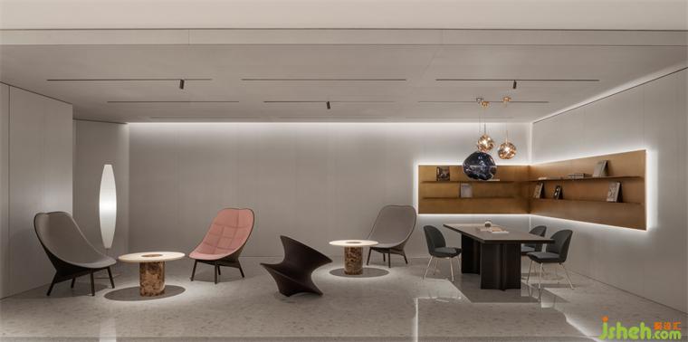 為了滿足不同需求的到訪會員各種交互需要,這里硬裝背景退居留白,裝修設(shè)計(jì)家具配飾占著據(jù)絕對主角。