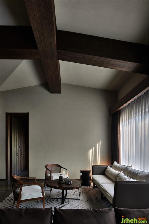 基于斜屋頂與橫梁的體塊,空間被切割為高低縱橫的立體格局,在審美的比例之內(nèi)微妙變化。而天窗的引入,打通了光與內(nèi)外的關(guān)系,四季風(fēng)物相伴,??闯P隆W鳛殡p層超大空間的復(fù)合房型,竹林雅居雙臥院落適合全家出游時居住,在自然里樂享親子時光。