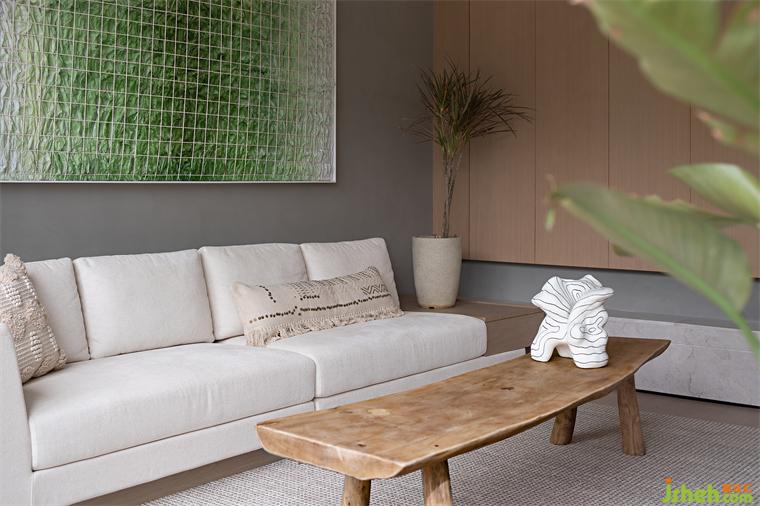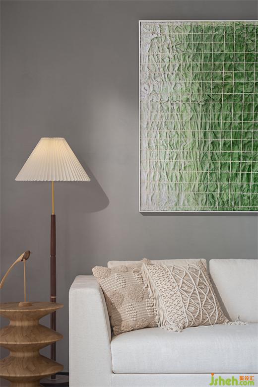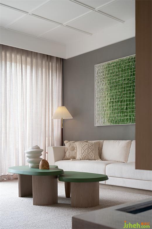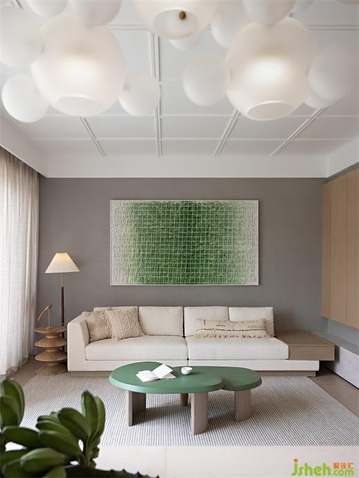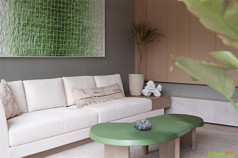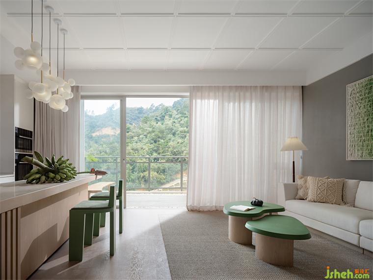 融創(chuàng)樣板房設計打造有機自然主義家居氛圍客廳清新的綠色色調,與自然同頻