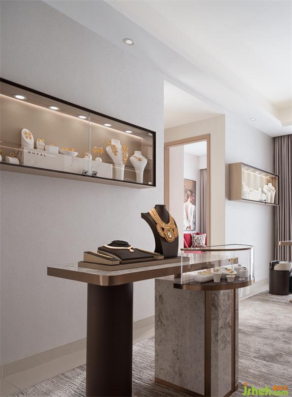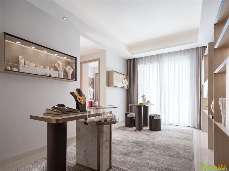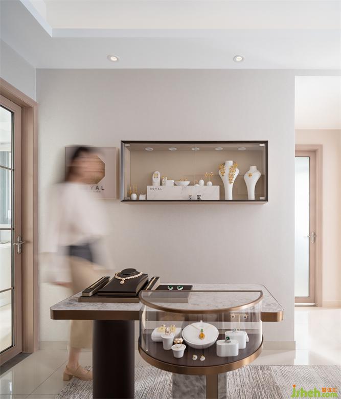 在首飾設(shè)計方面有著專業(yè)的背景和研究,在設(shè)計最初的階段便希望空間不同于常規(guī)店鋪,更像是一個會客廳,且針對不同的首飾類目提供不一樣的陳列功能。