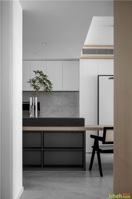 對于簡約,我們理解為選材上的克制,用色的純粹,不同的功能細(xì)節(jié)來支撐空間的平衡。石材與木質(zhì)的搭配在冷暖調(diào)中也顯得剛?cè)嵯酀?jì)。一個大的廚房空間,加一個大的餐廳,三五好友或親人可以經(jīng)常相約而憩,聊天、聚會、看電影等,一起享受愜意時光。