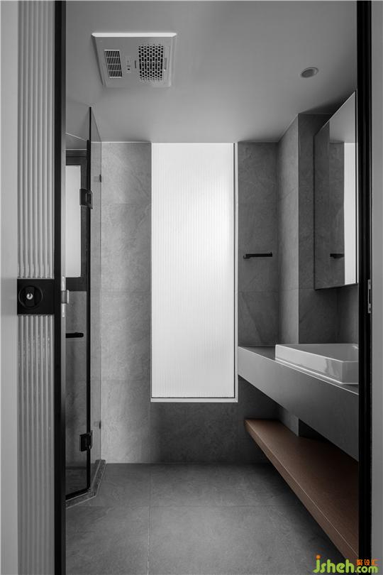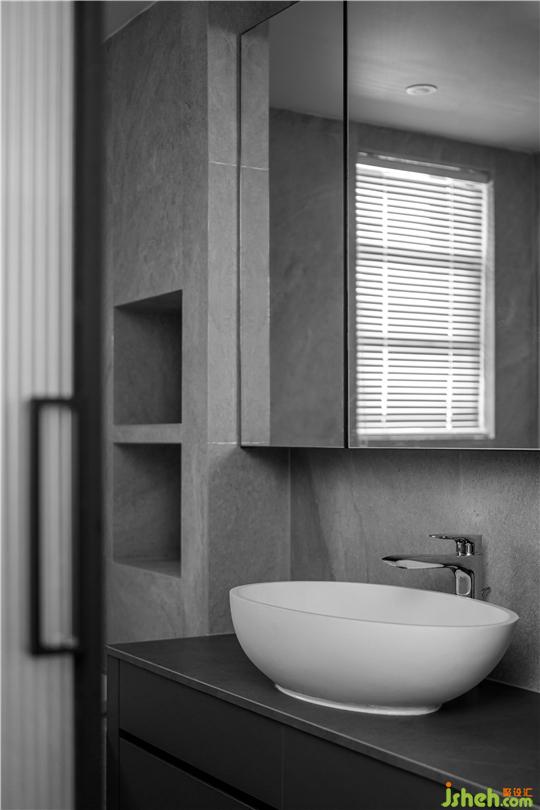 盥洗室是能讓人洗去一天疲憊,使身心得到休息放松的空間。主衛(wèi)和次衛(wèi)都以灰色調為主,在滿足儲物量的同時,摒棄繁雜,以簡潔、干凈搭配,讓空間變得更簡單舒適。