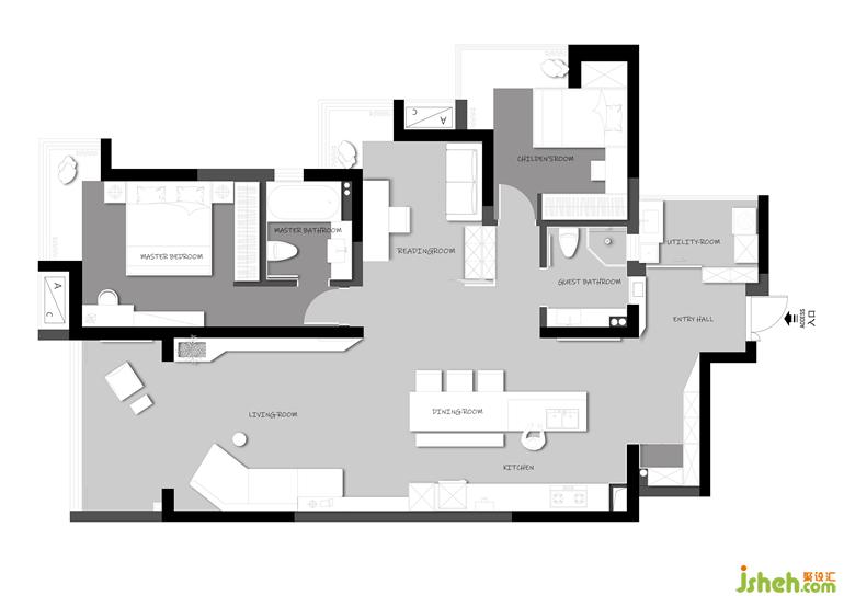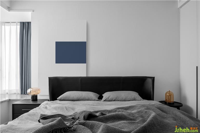 不奢望繁華似錦,只求云卷云舒的清淡,似水一樣的舒緩快樂,守一座城池,讓精神有所阪依,遠離喧囂,接近清寧。主臥大面積運用柔和的灰色調加上床頭留白的裝飾畫,以自然而然的手法糅合靜的基底,讓本就簡約的空間多了一份精致感。