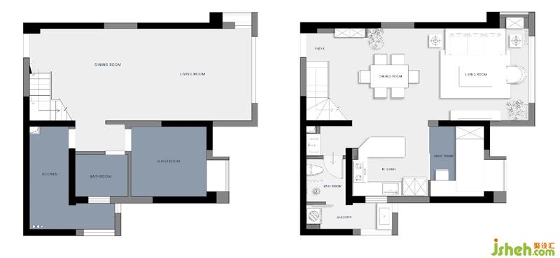 ?原房規(guī)劃的衛(wèi)生間區(qū)域較小,且廚房區(qū)域與餐廳分離較遠(yuǎn),一樓整個(gè)公共區(qū)域相對(duì)狹長(zhǎng)。改造后廚房與衛(wèi)生間對(duì)調(diào),將廚房區(qū)域向外擴(kuò)張,在保夠客房的同時(shí),開放式的廚房將廚房與餐廳巧妙的連接在一起,增大了空間視覺感同時(shí)提高了空間利用率。衛(wèi)生間也實(shí)現(xiàn)了干濕分區(qū)。
