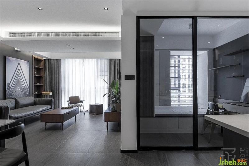 書房兼具客房功能,榻榻米的做法將儲(chǔ)物空間發(fā)揮到極致,玻璃隔斷式的門使餐廚空間的采光得到大大改善。