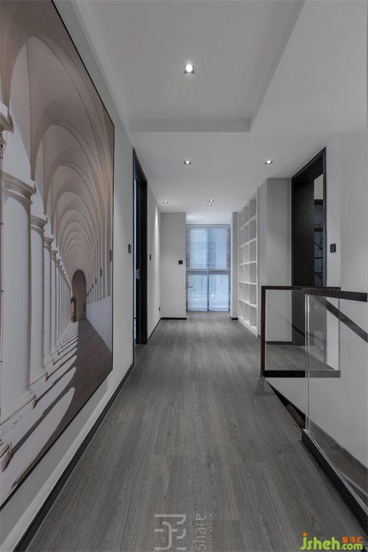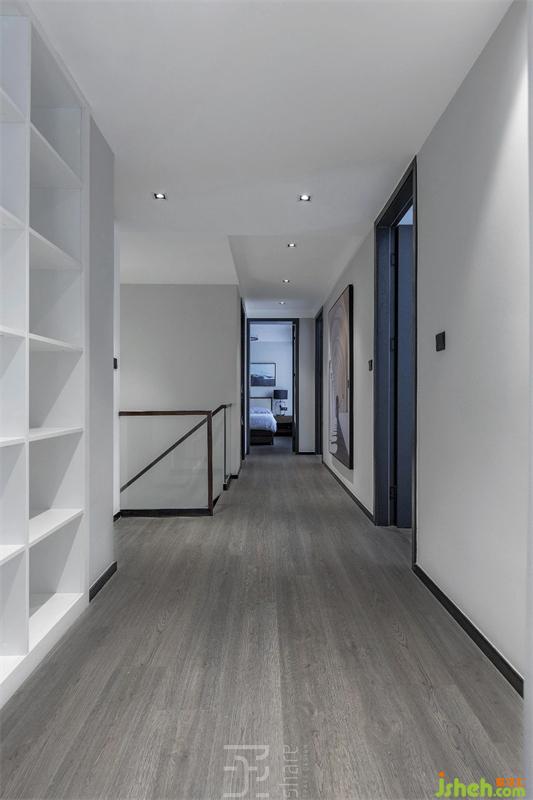 二樓樓道原本唯一的采光區(qū)域在衛(wèi)生間,將原有的衛(wèi)生間位置打開;將后面落地窗戶納入樓道區(qū)域,使整個空間采光得到改善;樓梯采用輕巧的材質,使整個空間更加通透明亮。