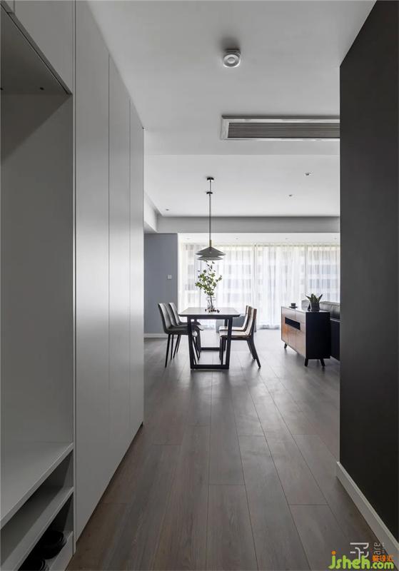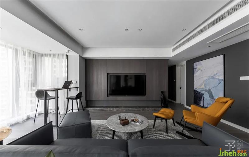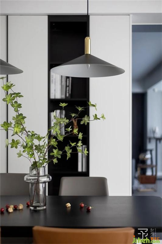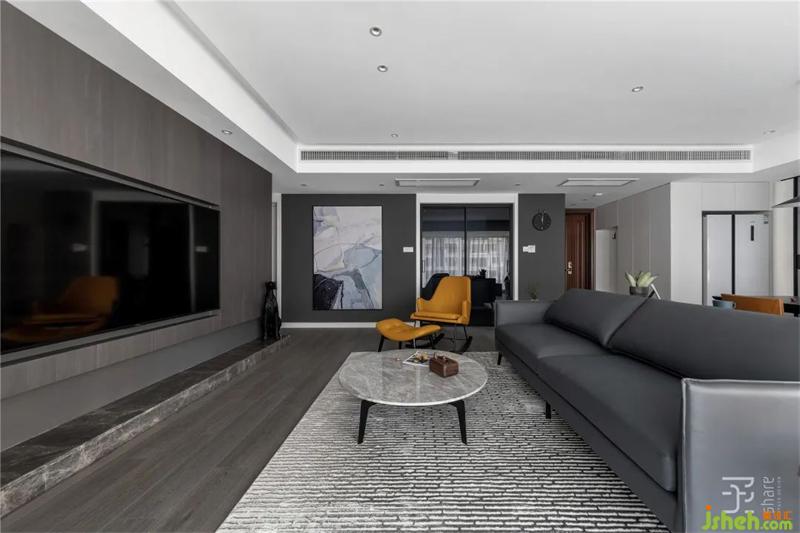 我喜歡黑,亦喜歡白,當黑白交織在一起的時候,又融合出了另一種不僅神秘而且具有一絲純潔的顏色—灰。本案選用黑白灰為主色調(diào),搭配胡桃木色做修飾,營造簡約干凈的氛圍。