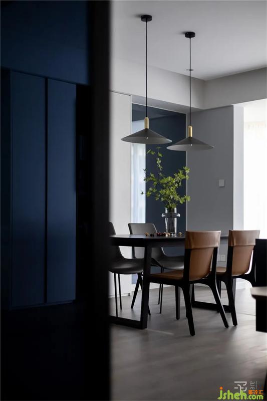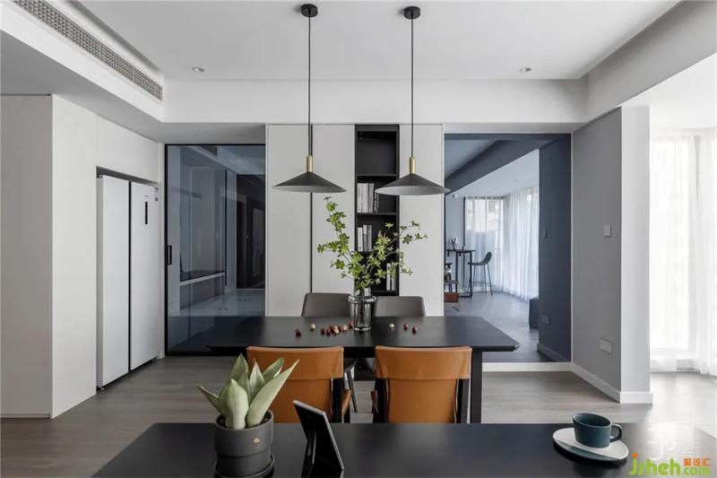 我們?nèi)∠筒蛷d之間原有推拉門,客餐廳與陽臺區(qū)域的分隔也被打開,讓原本較窄的陽臺空間更好的融入客廳。同時把陽臺封裝成幾面超大的落地玻璃,讓整個空間更為通透和寬敞,讓就餐空間不再單調(diào)。