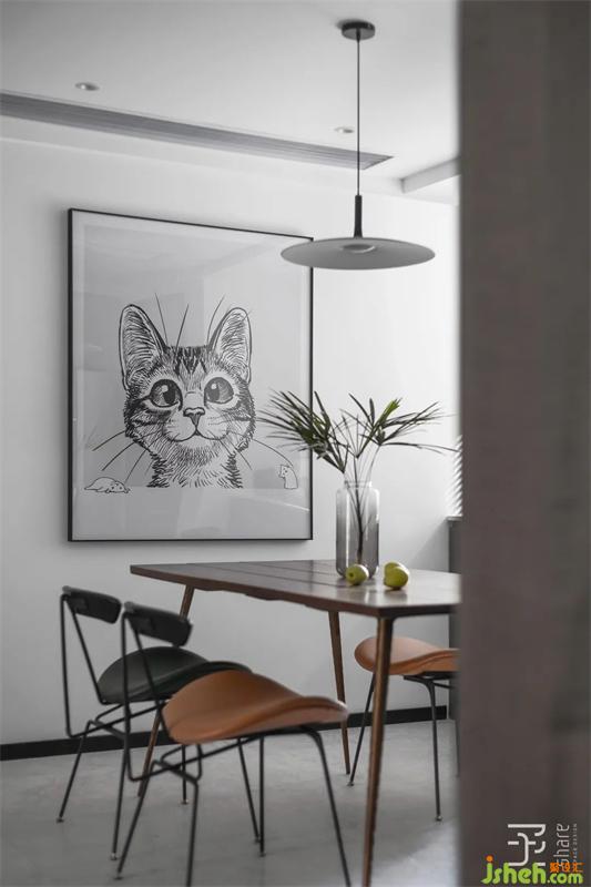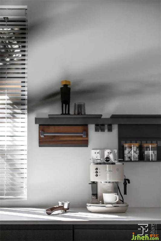 清透的百葉簾讓光灑進(jìn)室內(nèi),光與影相交錯(cuò)。早起泡一杯咖啡,煮一杯牛奶,靜坐于此,感受時(shí)間與空間的變換,將思緒拉進(jìn)自然的呼吸中,享受生活的愜意溫馨。